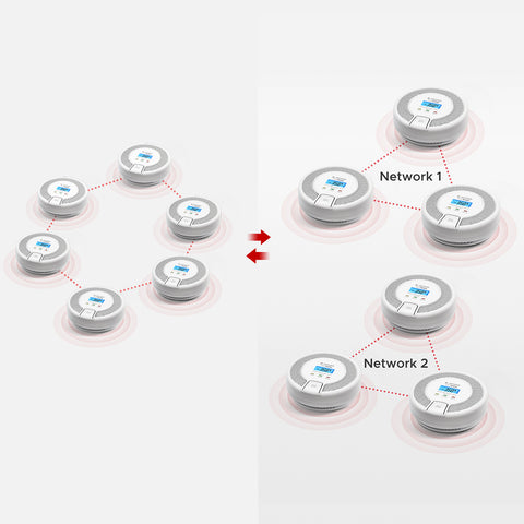 Si un danger est détecté, les détecteurs interconnectés vont clignoter suivant des schémas différents – le détecteur source de l’alarme clignotera en rouge, tandis que tous les autres clignoteront alternativement en rouge et vert.