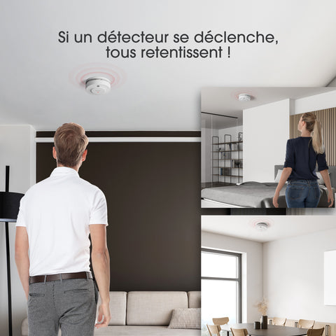 - L’interconnexion sans fil s’effectue par radio-fréquence, de sorte que lorsqu’un des détecteurs se déclenche, tous les détecteurs interconnectés dans le système se mettent à retentir.