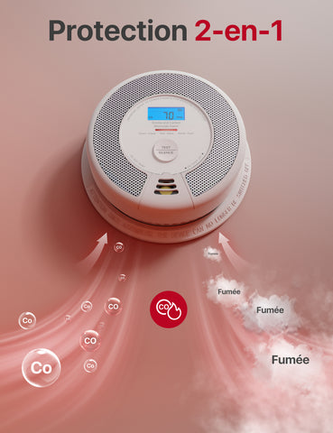 | Composants inclus | 2 × Détecteur de Fumée et de Monoxyde de Carbone SC07-WX, 2 × Piles CR123A, 4 × Vis, 4 × Chevilles, 1 × Manuel d'utilisation (français inclus) |