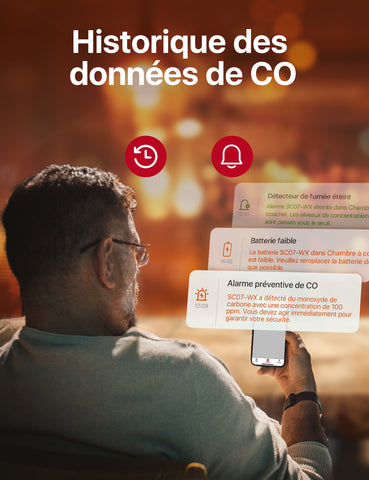 vous recevrez un avertissement immédiat sur l’application lorsque le niveau de CO dépassera 100 ppm. Ainsi, vous pourrez réagir rapidement sans attendre une réponse tardive