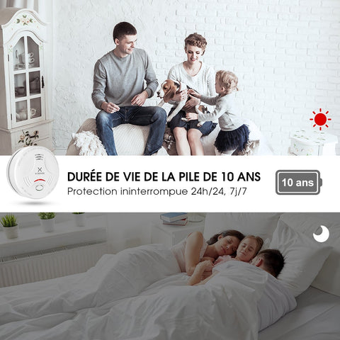 Une pile de hautes capacités alimente le détecteur pour une protection 24/7 de toute la famille, de sorte que vous ne devez pas vous soucier de fréquents remplacements de piles ou de coupures d’électricité.